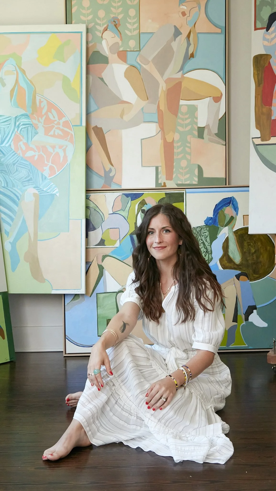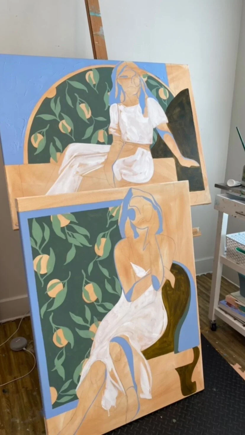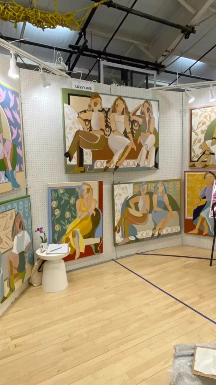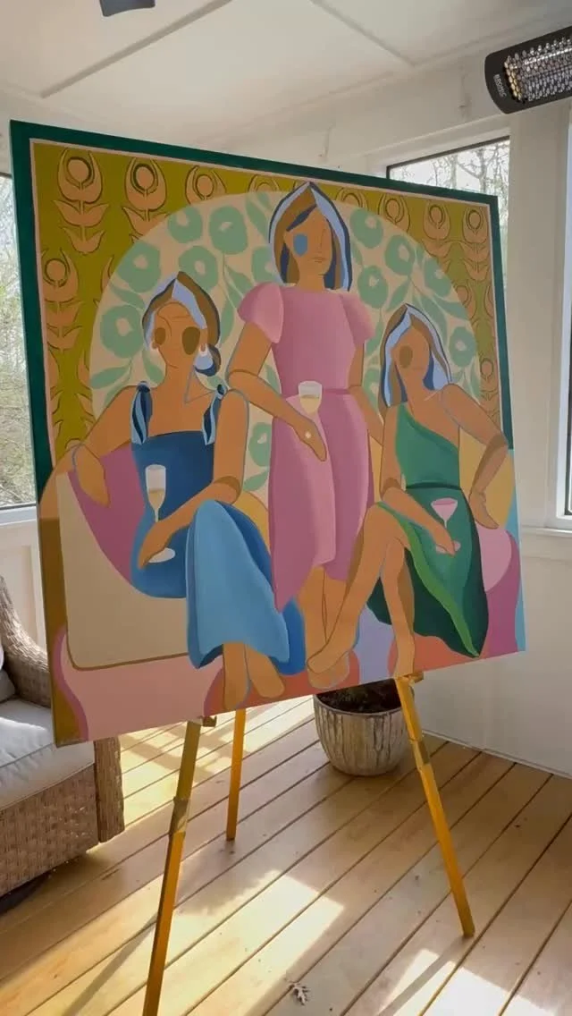I’m Lizzy Love, a painter living and working in Nashville, TN. I create artwork on both canvas and paper, focusing on abstracted figurative works layered with pattern and shape. On this site you can find out more about me and my process, shop some of my available work, learn about my commissions process, and find out where I am represented.