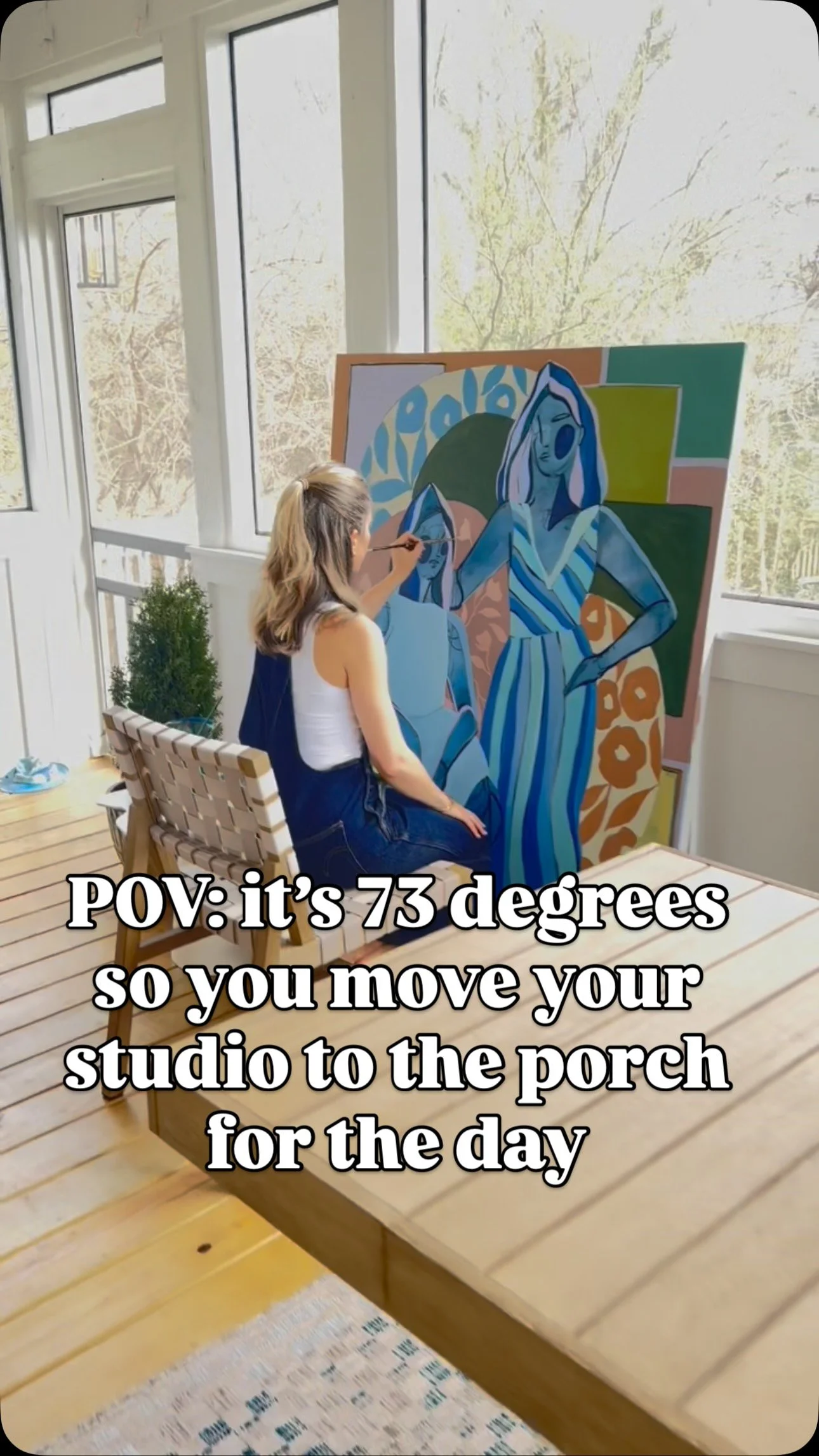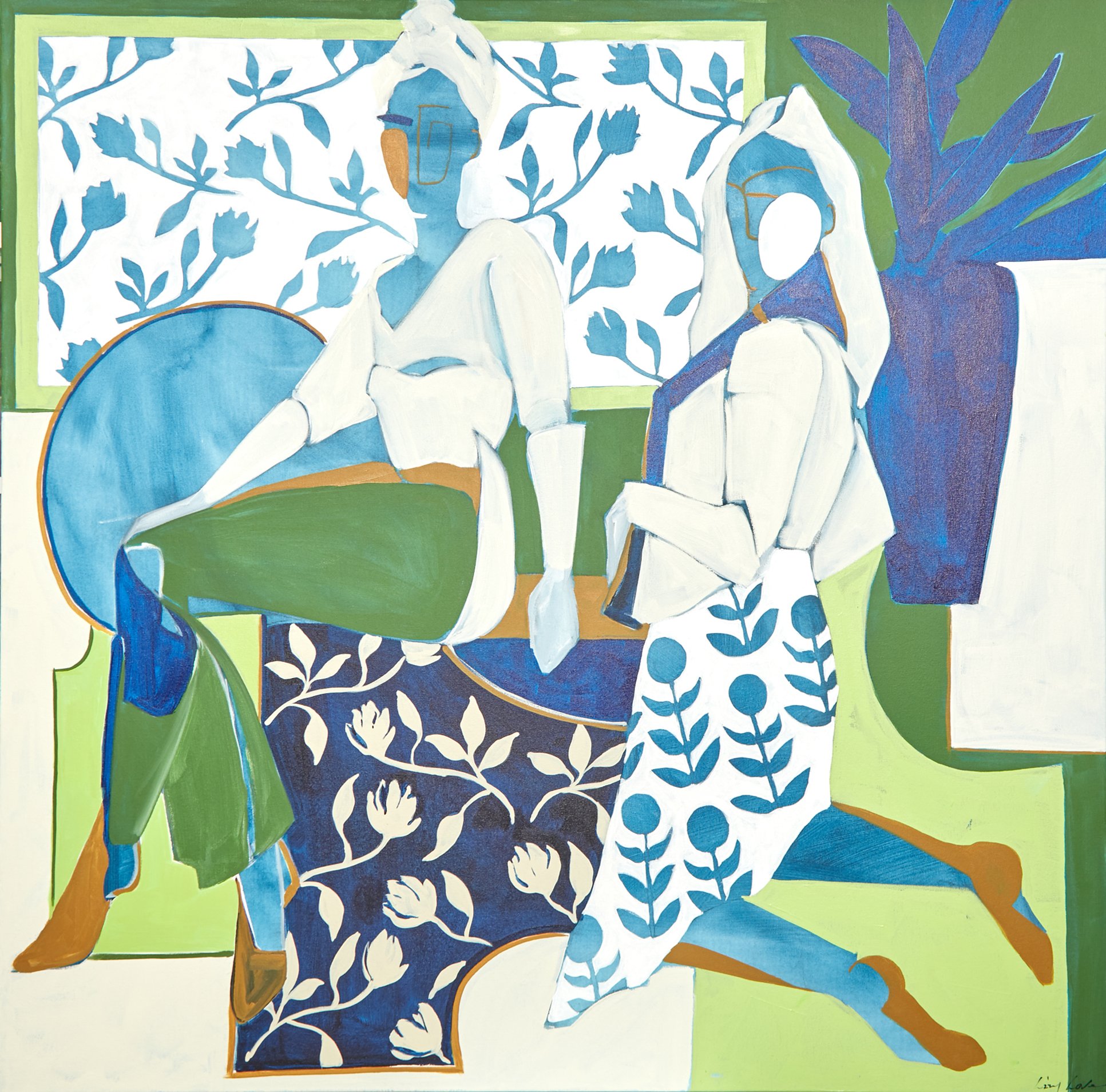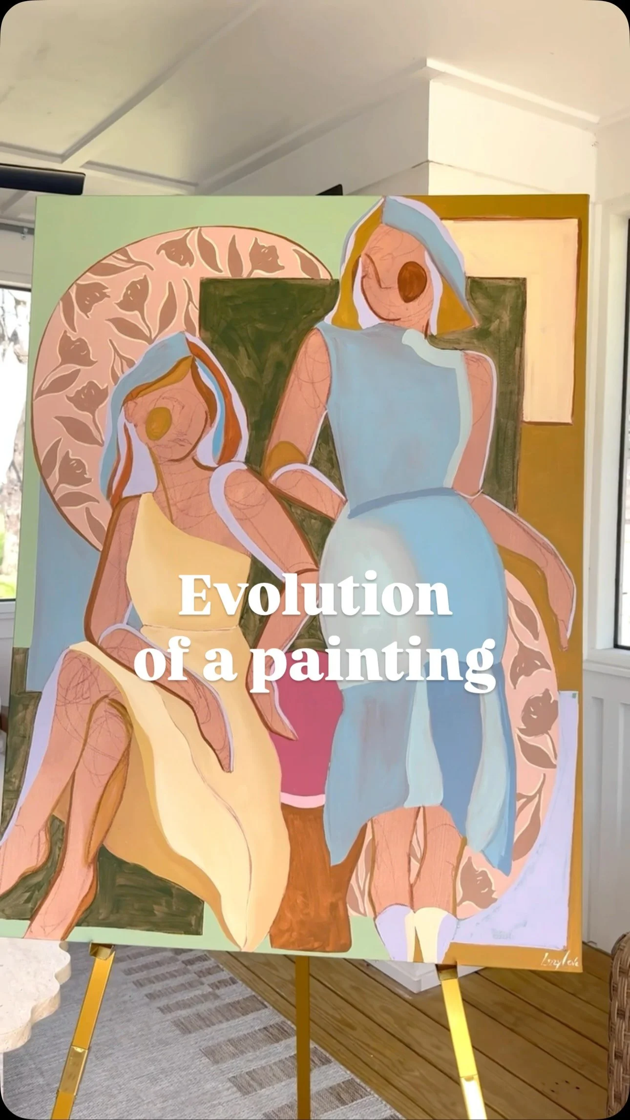 I’m Lizzy Love, a painter living and working in Nashville, TN. I create artwork on both canvas and paper, focusing on abstracted figurative works layered with pattern and shape. On this site you can find out more about me and my process, shop some of my available work, learn about my commissions process, and find out where I am represented.